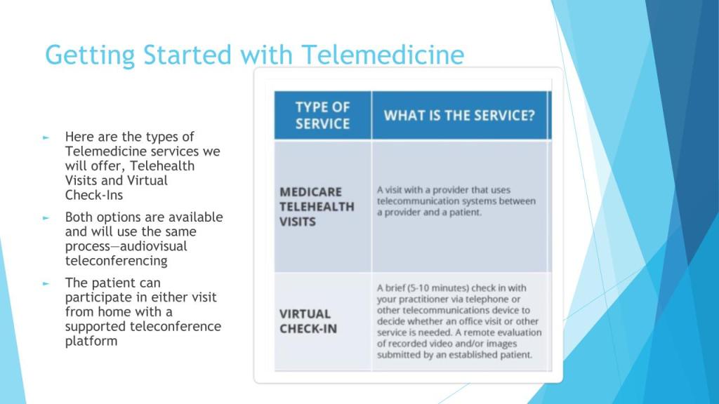 - Telehealth allows patients to have a face to face visit over audiovisual software with their provider.